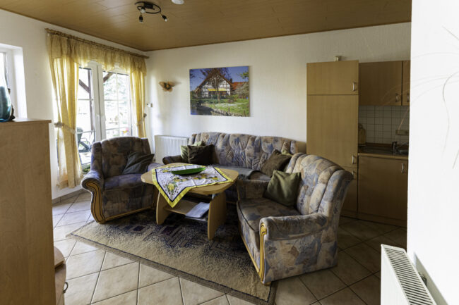 Ferienwohnung im Erdgeschoss Diese Wohnung verfügt über Schlafmöglichkeiten für 3 Persone (Aufbettung ist möglich). Es gibt einen Wohnraum mit SAT-TV sowie Radio und CD-Spieler, zwei Schlafräume und ein Bad mit Dusche und WC. Preise Der Preis für diese Ferienwohnung beträgt bei Belegung mit bis zu 2 Erwachsenen und einem Kind: 45 Euro pro Nacht.  …