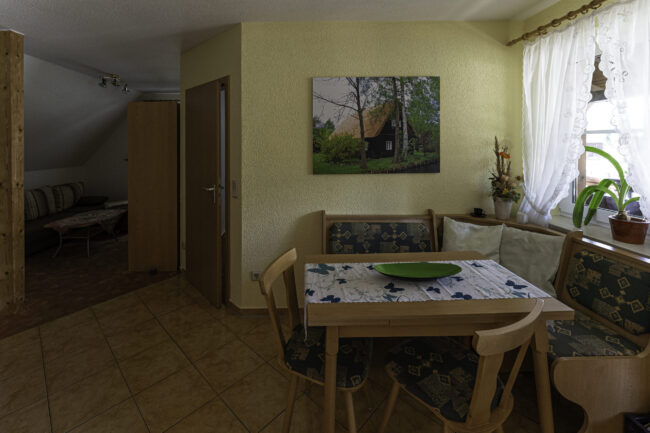 Ferienwohnung im Obergeschoss Diese Wohnng verfügt über Schlafmöglichkeiten für 2 Personen (Aufbettung ist möglich). Sie besteht aus einem Wohnraum mit SAT-TV, Radio und CD-Spieler, einem Schlafraum, einem Bad mit Dusche und WC, sowie einem Balkon. Preise Der Preis für diese Ferienwohnung beträgt bei Belegung mit bis zu 2 Erwachsenen: 60 Euro pro Nacht (Mit einer…